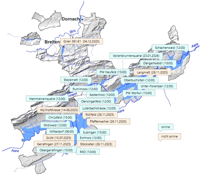 610 229 070 -------------------------- Pegel / Leif / Temp Diagramm 31 Tage Diagramm 1 Jahr Diagramm seit Messbeginn prov. Jahrbuchblatt |